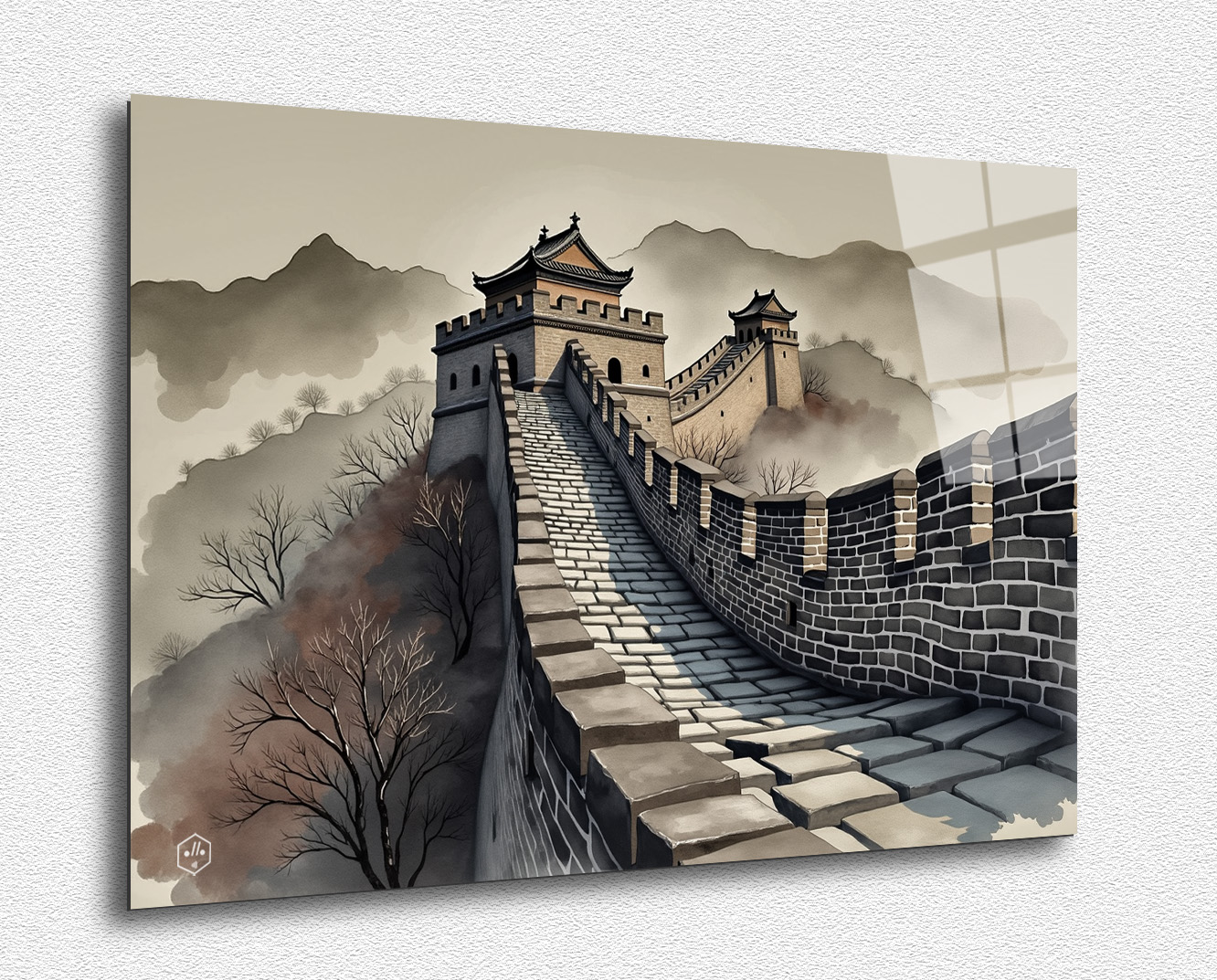 • A detailed ink painting of the Great Wall of China, capturing its grandeur and historical significance.